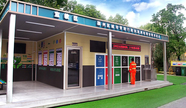 采用智能化垃圾房用手靠近感应区或按下按纽,垃圾箱会自动打开,垃圾投放完成后,垃圾箱自动的关闭。大大提升了垃圾投放的安全和卫生水平。集智能收纳、分类、知识宣传为一体的多功能垃圾房,该分类房具备新风除臭、自动感应开门、监控、洗桶、称重、人脸识别、臭氧监管等核心功能,垃圾房内配备有液晶显示屏,用于放映垃圾分类宣传动画、值班信息等。