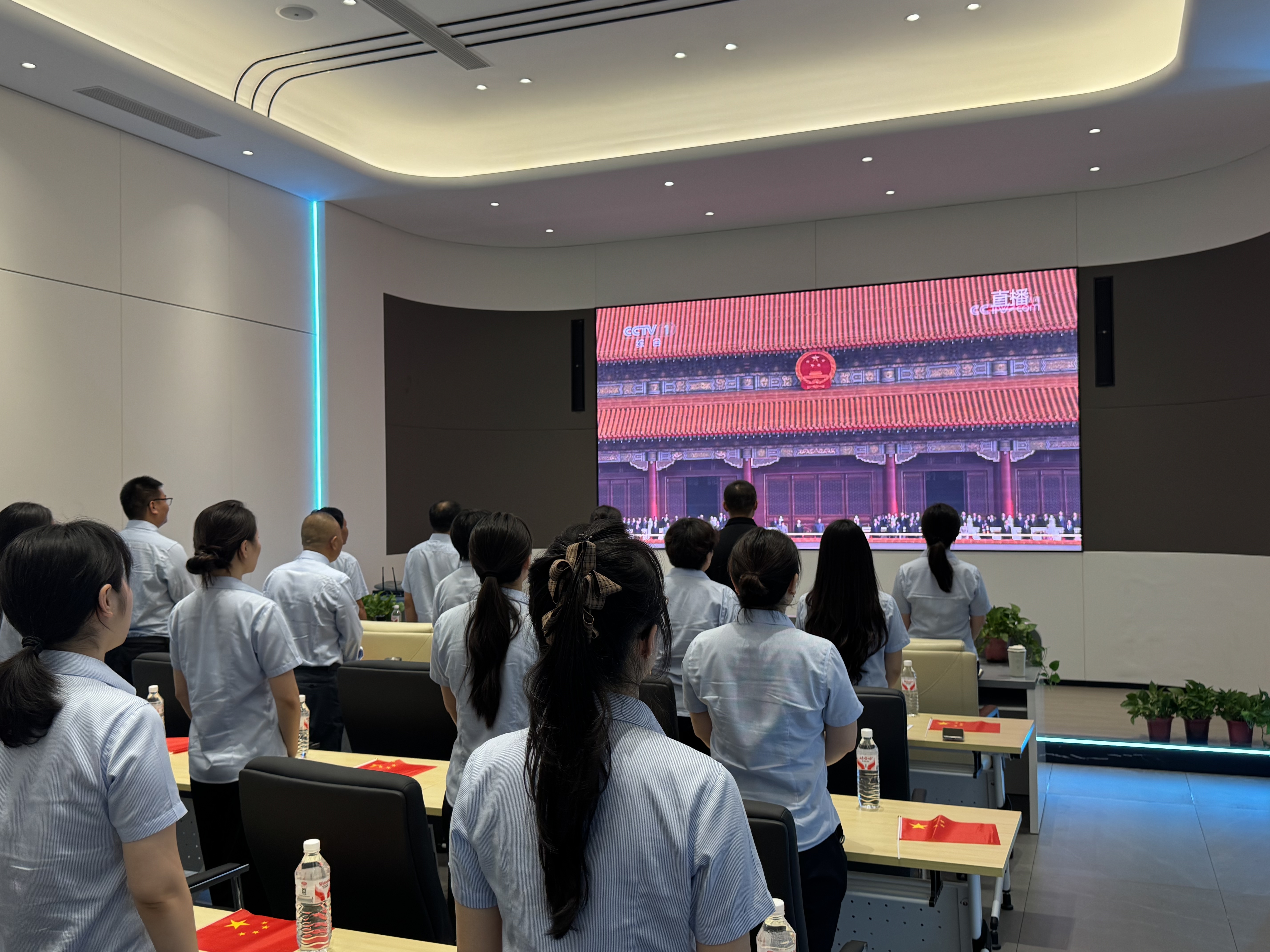 9月3日上午,佳士成环境科技有限公司组织总公司及各分公司全体党员和员工代表,集中观看纪念中国人民抗日战争暨世界反法西斯战争胜利80周年大会直播,共同感受这一庄严而振奋人心的历史时刻。
